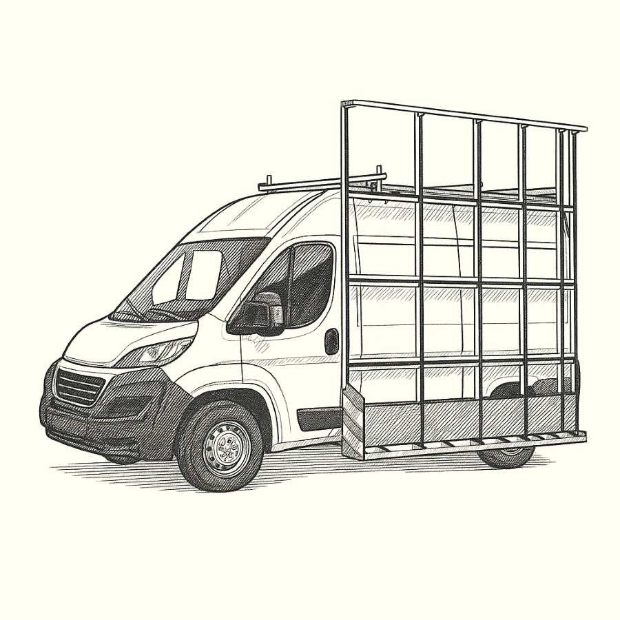 Preferido por muchos cuando se transportan ventanas con marco. El ancho extra proporciona estabilidad y flexibilidad en la carga.